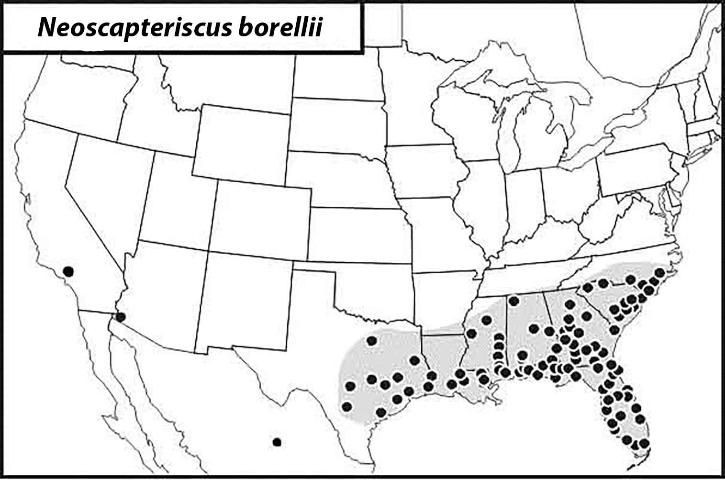 Source: University of Florida. Shaded areas represent where mole crickets are of concern.